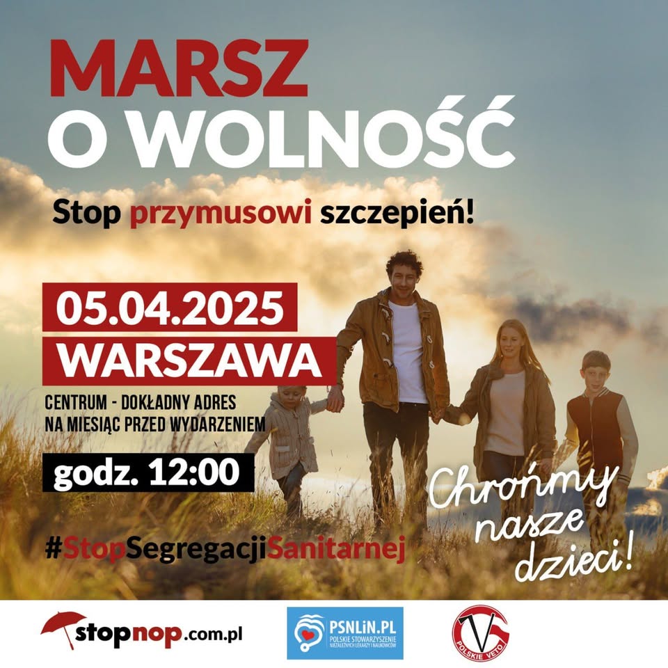 W odpowiedzi na działania władz środowiska wolnościowe organizują 5 kwietnia wielki marsz w obronie wolności i przeciwko przymusowi szczepień. To szansa, by społeczeństwo pokazało rządowi, że nie godzi się na łamanie praw obywatelskich i że nie pozwoli na dalsze represje wobec polskich rodzin.